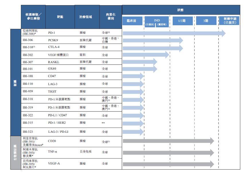 在所研发的抗体药中已有4种在中国进入了后期的临床开发阶段。除了国内的开发,公司还获得了FDA就有关信迪利单抗(IBI-208 )的IND申请授出批准,并计划在美国启动信迪利单抗的多种新1b/2期临床试验。由于信迪利单抗已在中国获批,公司预计最快2019年推出信迪利单抗药品。