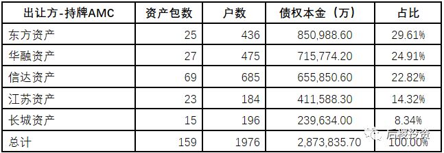 从需求端来看,华融资产在一级市场持牌AMC受让中占据半壁江山。地方AMC江苏资产,追赶其他持牌AMC,成为市场的主要参与者。