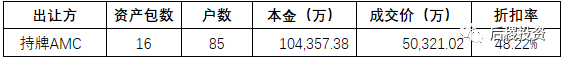 根据可采数据,我们抽取了持牌AMC出让的16个资产包合计85户的成交数据作为样本进行分析。