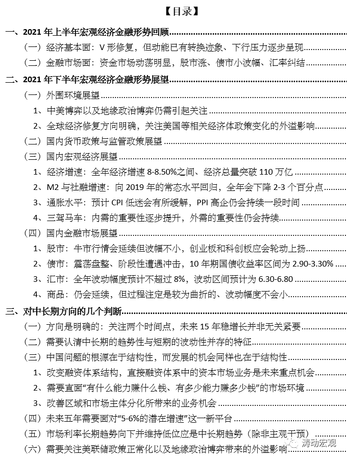 本报告在2020年底的基础上,结合最新情况变化、站在当前视角,进一步探讨2021年下半年的宏观经济金融形势。
