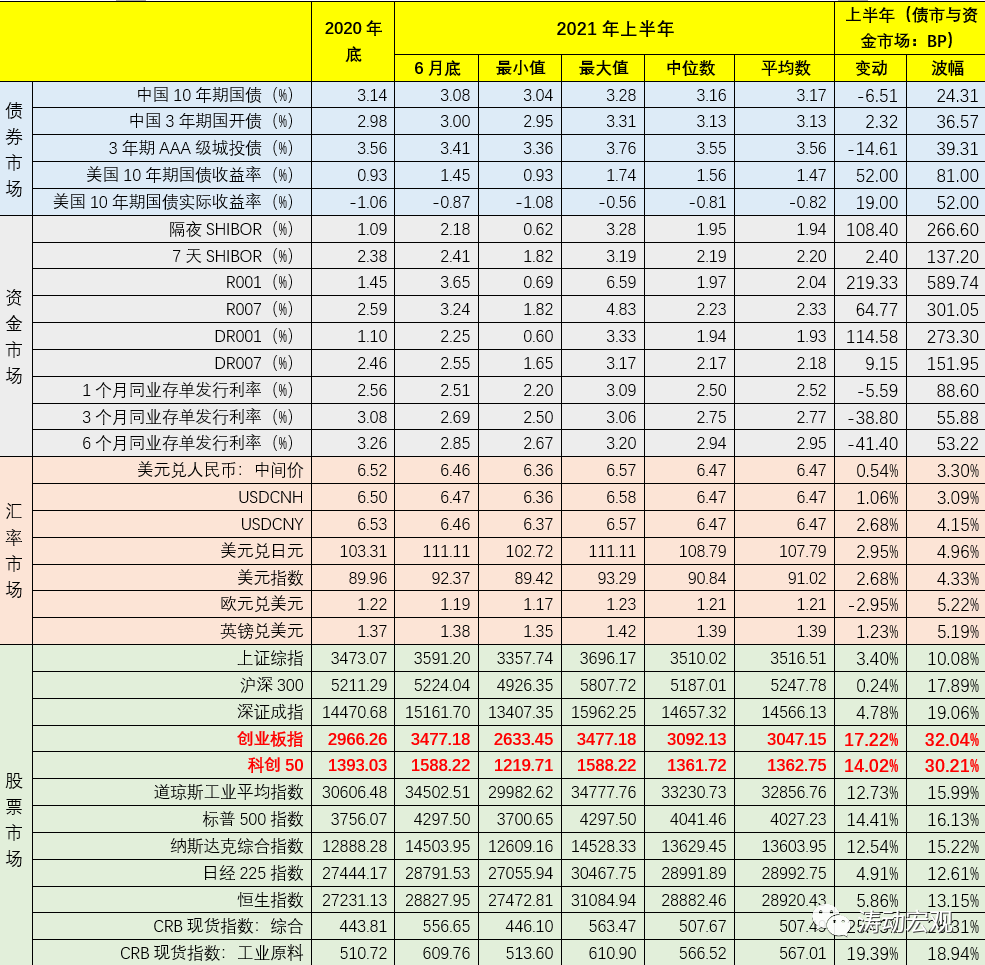 (3)2021年下半年经济基本面仍有一定程度支持,且政策层面依然会相对友好,美联储所代表的政策收紧并不会在今年兑现,同时国内货币政策仍会以观望为主,目前看暂没有调整的必要,但预期变化也会导致下半年波动幅度不会小。