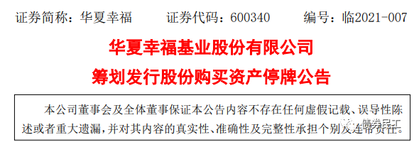 1月28日,华夏幸福发布《筹划发行股份购买资产停牌公告》,筹划以发行A股股份的方式购买朗森汽车产业园开发有限公司(以下简称“朗森产业园”)持有的天津玉汉尧石墨烯储能材料科技有限公司(以下简称“天津玉汉尧”)33.34%股权。