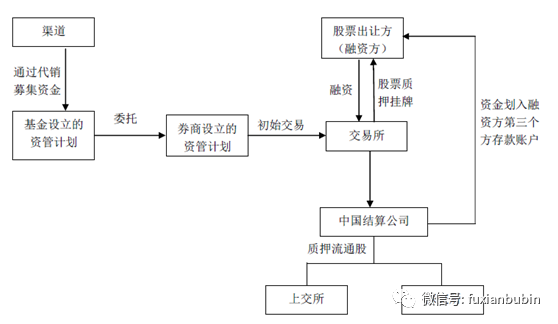 考虑到基金公司和基金子公司不能托管股票,所以开展上市公司股质业务一般采用三方监管模式,具体交易结构如下: