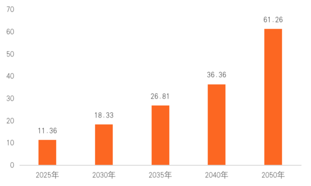 目前,我国养老产业处于发展初期,未来拥有广阔的发展前景。中国社科院《中国养老产业发展白皮书》显示,预计到2030年我国养老产业市场可达13万亿元。与此同时,在消费水平绝对值方面,老年人消费水平高于人均消费水平。中国社科院《中国大健康产业发展蓝皮书(2018)》显示,预计到2050年,老年人口总消费将达到61.26万亿元。