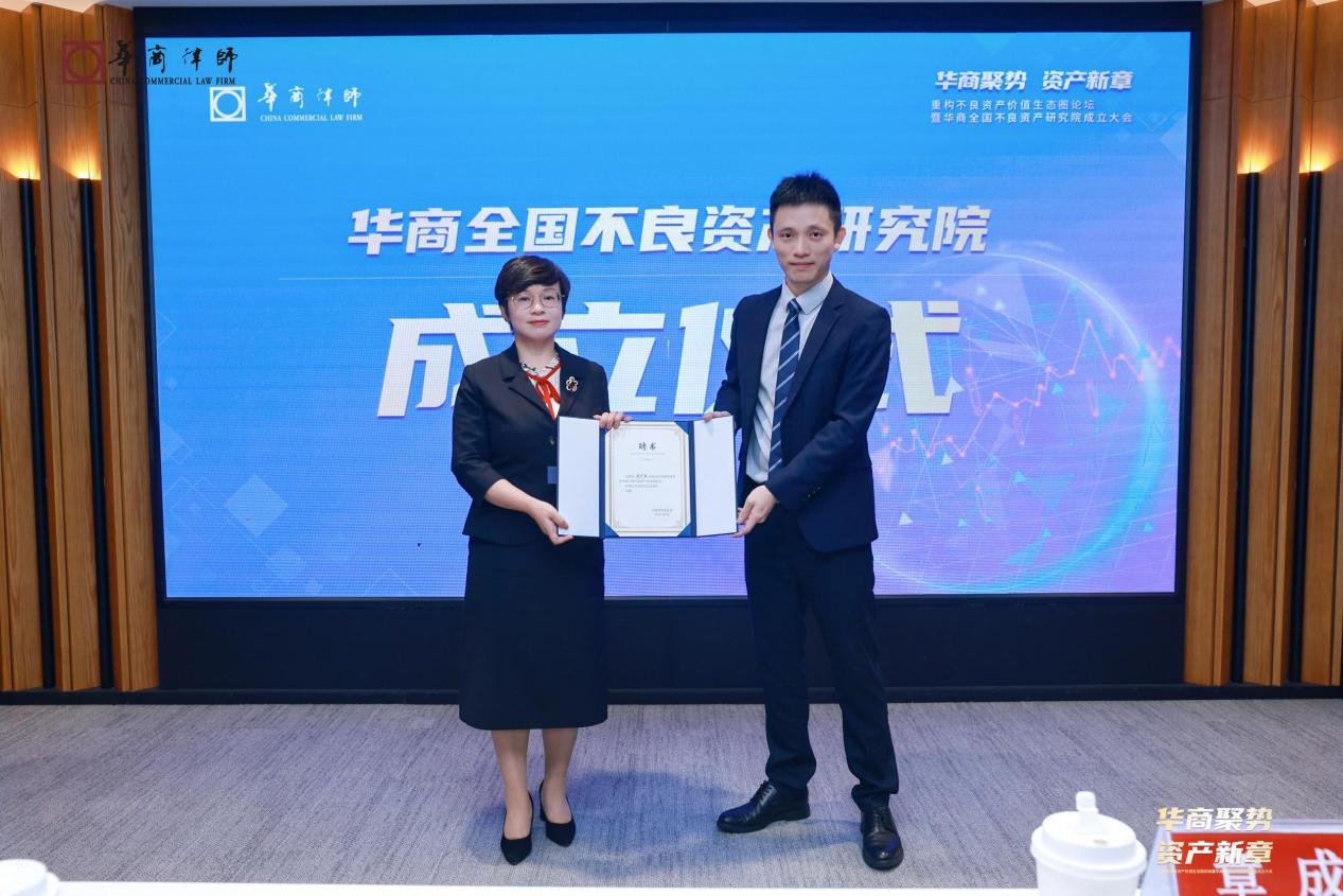 随后,林煜鹏律师宣读了关于华商全国不良资产研究院正式成立的文件。在嘉宾的见证下,林煜鹏律师与唐华英律师一道为研究院揭牌,并为研究院高级顾问、班子成员颁发了聘书。