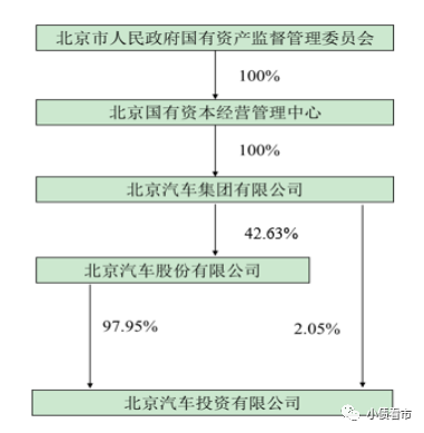 从股权结构看,北汽投资的控股股东为北汽股份(1958.HK),持股比例为97.95%,公司实际控制人为北京市国资委。