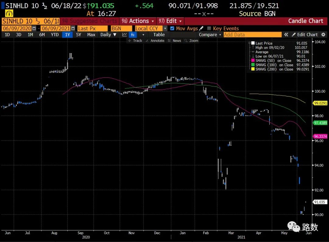 这也是新力地产存量美元债中唯一的一笔中长期美元债。发行规模2.1亿美元,票息10.5%,每半年付息,2022年6月到期。