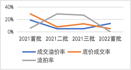 图2-1:2021-2022北京各轮供地成交面积、成交率、底价成交率、流拍率等