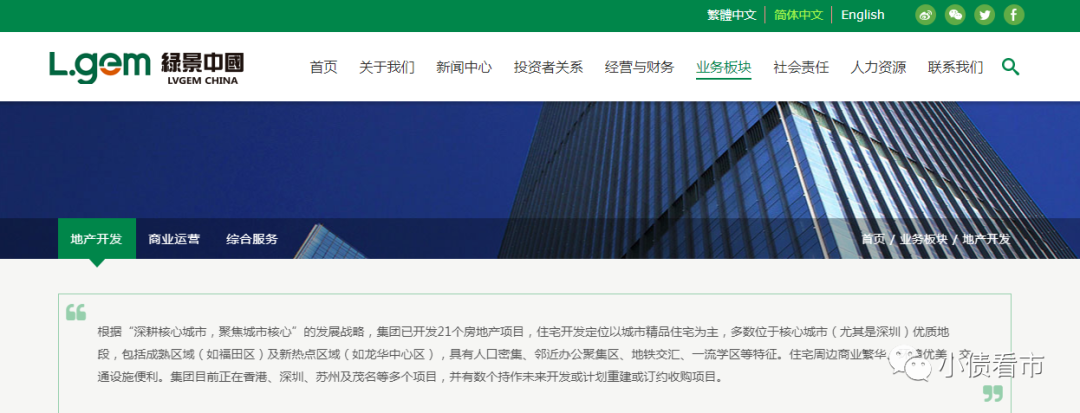 据官网介绍,绿景中国成立于1995年,是深圳公认知名的综合性房地产开发及商业物业运营商。