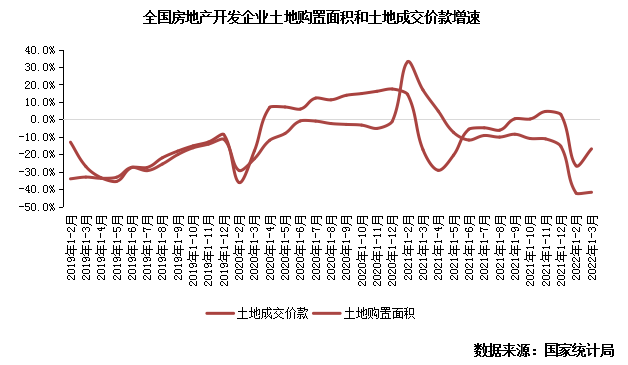据国家统计局数据:1-3月,房地产开发企业土地购置面积1339万平方米,比上年下降41.8%;土地成交价款672万亿元,下降16.9%。单月来看,3月土地购置面积和土地成交价款分别为501万平方米和303亿元,同比下降41%和1%。
