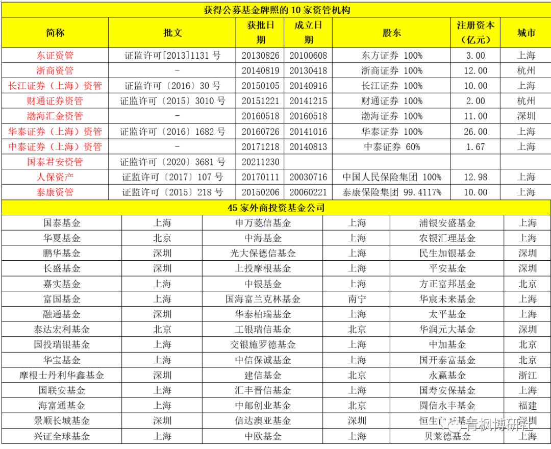2、目前已有2家保险资管和8家券商资管子公司获得了公募基金牌照,尚无1家理财公司获得公募牌照。预计未来一段段时期理财公司也将陆续有几家会获批公募牌照,而获得公募牌照的保险资管和券商资管亦将会扩容。