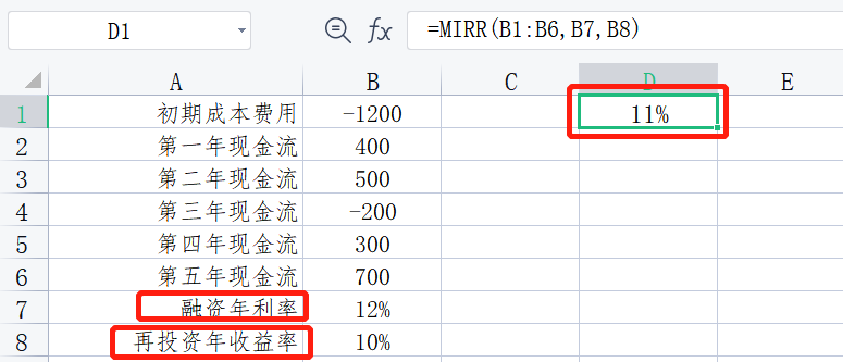 MIRR是意思是改良版IRR。MIRR就是要修复上面这个再投资回报率问题!