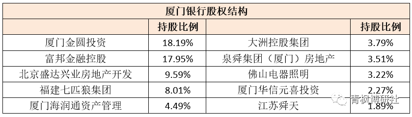 (一)厦门银行:第一大股东由厦门市财政局变更为厦门金圆投资集团