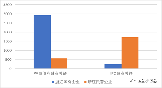存量的债券中,浙江民营企业债券融资规模合计1338.79亿元,浙江国有企业(不含金融机构)债券融资规模合计8989.41亿元。尤其是2019年以来,浙江民营企业债券融资规模仅为566.79亿元,相比之下浙江的国有企业(不含金融机构)融资规模高达2926.61亿元,是民营企业融资规模的五倍。