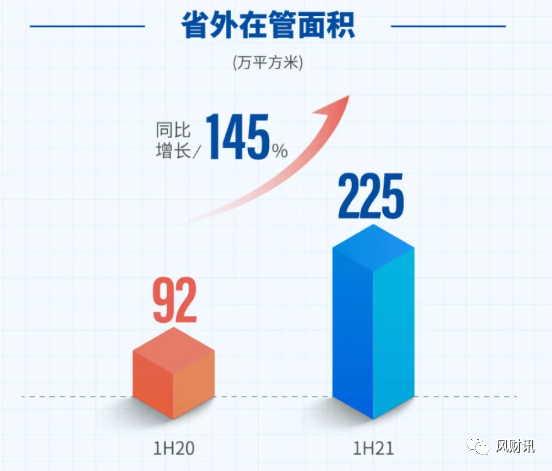 中原建业总裁马晓腾告诉风财讯,“公司在管面积争取在三年内突破4000万平米。其中,省外争取在2021年年底达到400万平方米,到2023年,占比从7.5%提升到25%以上。”