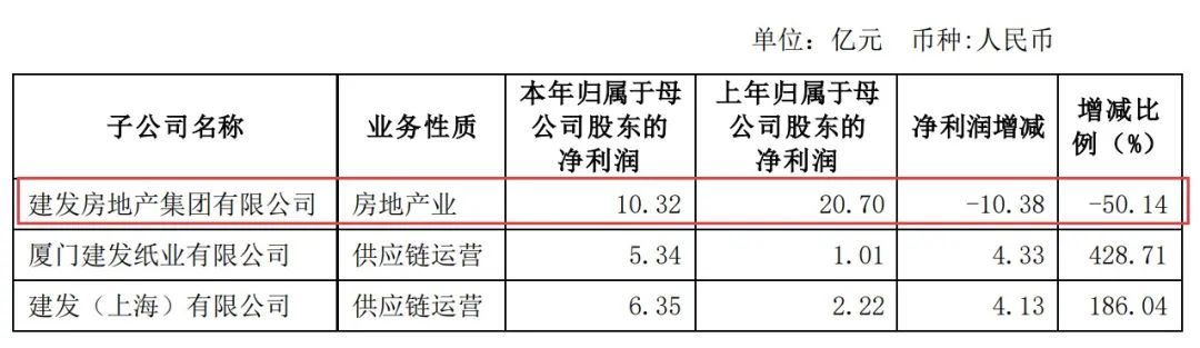因为“土地一级开发业务利润较去年同期下降”,子公司建发房地产受影响更大,2021年半年报显示,建发房地产本报告期的归母净利润为10.32亿元,比上年的20.7亿元腰斩。