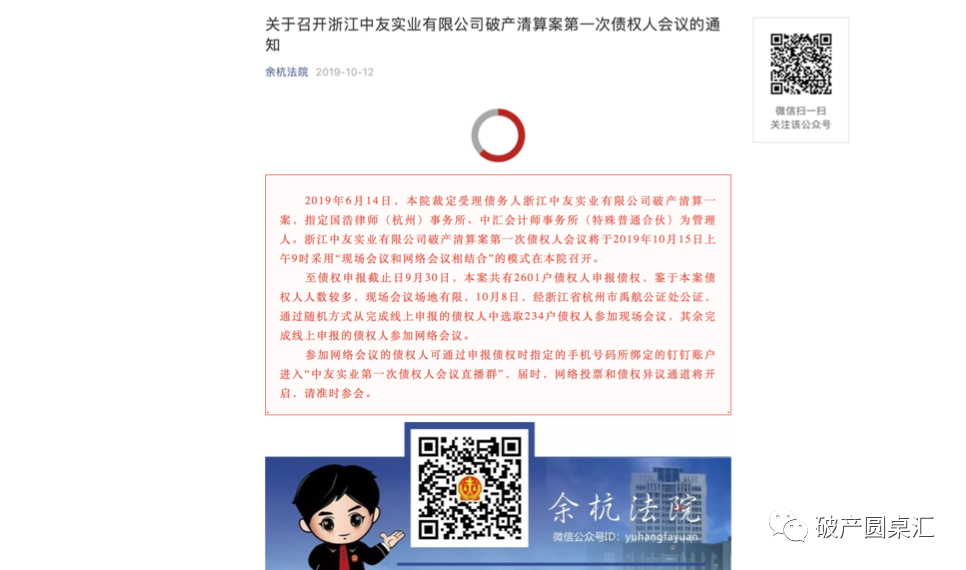 2019年11月,我们团队被长沙市中级人民法院指定为湖南湘联节能科技股份有限公司、湖南湘联科技有限公司协同重整案的破产管理人。受新冠肺炎疫情影响,债权人复工时间不一或多居家避疫,为最大限度减少人员流动和聚集,同时推进拯救企业,长沙中院坚持疫情防控和拯救企业两手抓、两手硬,并于3月初决定以网络形式合并召开两案第一次债权人会议。笔者作为破产管理人团队代表,全程与“钉钉”平台对接,协调网络债权人会议各项事务,幸运的是,此次债权人会议圆满完成各项议程,达到预期效果。