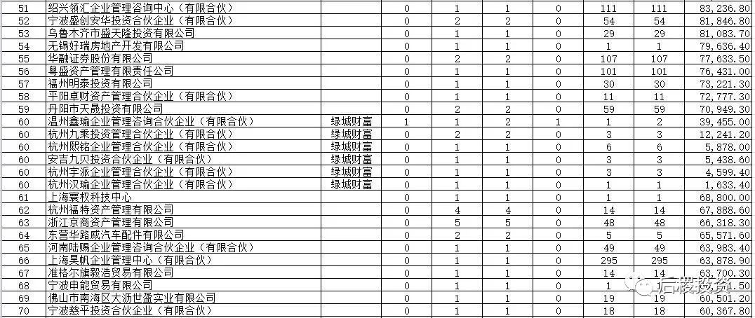 与出让类似,受让二级机构主体最多的省份还是浙江、江苏、广东和福建,上海的排名有所后移。而活跃二级投资人主体数量占全部二级投资人数量的比例较出让有下降,这个数据反映了当地二级机构的竞争激烈程度,占比越小的地区,二级机构间的竞争越激烈。