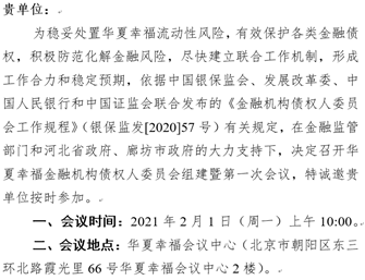 第六条债委会组建会议可以由持有较大债权的金融机构发起召开,也可以由债务企业和持有较大债权的金融机构协商后共同发起召开。
