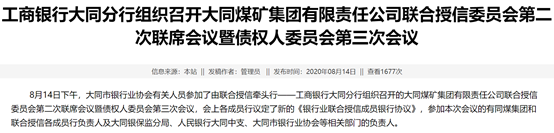 我们结合既有的现实来看,以大同煤矿的案例来看,此前整体债务较大,已经先行债委会,是一种防范风险的视角,整体实现联合授信的职能,避免踩踏。