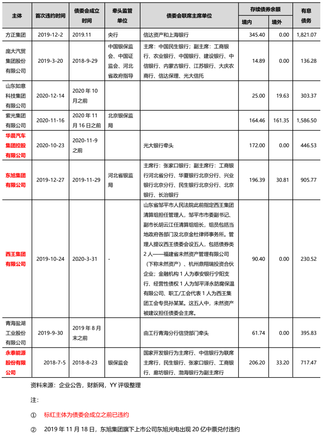 回到现实和历史,我们统计了债委会运作的情况以及此前的一些已经违约的主体,债委会至少没有让事情变得更坏,是起到了相当正面的作用的,细节如下: