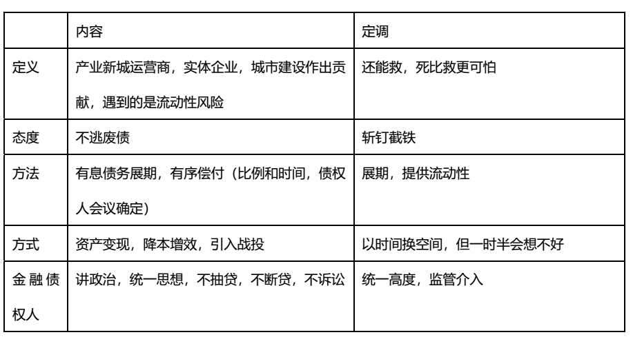 债委会,本意是想提供这样的一个台阶,在债务幻灭或行将幻灭的时候,将损失最小化,社会影响最小化,保障一定程度的秩序,坚持按照市场化、法治化、公平公正、分类施策的原则进行的一种存在。