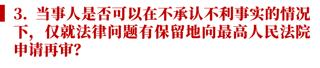 如果案件明显符合这一标准,即案件争议完全属于对法律适用的不同理解,则也无需过多讨论。本文希望讨论的是,如果案件存在涉及主要事实问题的争议,是否还有可能向最高人民法院提起再审?
