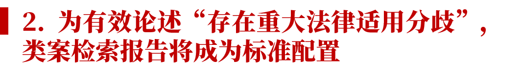 虽然理解与适用的措辞是“必要时”“还可以”附类案检索报告,但为了论证存在“类案不同判”,类案检索报告几乎是必须配备的标准配置。和既往案件的类案检索报告不同,这里需要向最高人民法院提交的类案检索报告,不仅应报告对己方有利的案例,还应包括对己方不利的案例,这样才能向最高人民法院展示实践中存在的法律适用分歧。