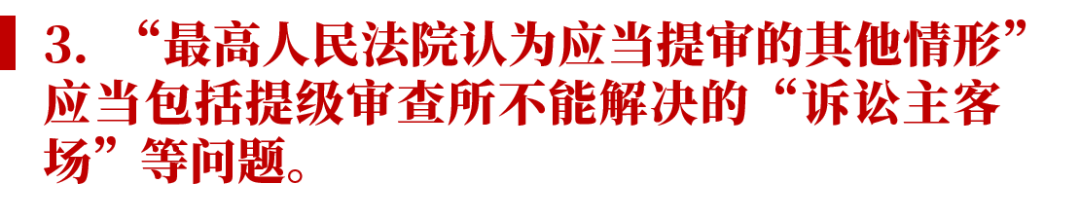 《审级改革试点办法》第十四条所规定的“最高人民法院认为应当提审的其他情形”固然属于兜底条款,为未来最高人民法院所可能作出的变更或修正留下空间。仅基于目前的《审级改革试点办法》,此处的其他情形也应当包括提级审查所不能解决的“诉讼主客场”等问题。