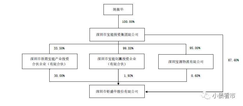 从股权结构看,宝能集团持有钜盛华67.4%股份为其控股股东,姚振华持有宝能集团100%股份,为公司实际控制人。